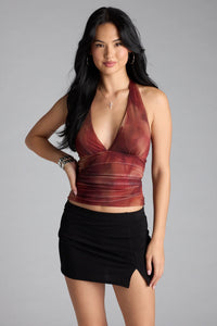 You in this alluring plunge halter top will be a total vibe! Designed with a U-wired neckline and ruched side seams, this fitted top is perfect for a night out.