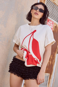 Flaunt a sporty chic allure in this graphic crop top for game day! The top features a front 24 graphic detail and sheer lace bodice for a femme flair, while the relaxed hem flaunts your figure. Pair with shorts.