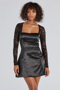 Liora Lace Sleeve Satin A-Line Mini Dress