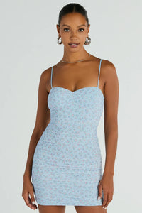 Give yourself a sweet feeling in this ditsy floral mesh mini dress perfect for spring and summer soirees! With a sweetheart neckline, padded bra cups, and adjustable spaghetti straps you;ll feel confident and comfortable. The side ruched seams accentuate your curves along the bodycon fit for a playful touch. Complete the look with a choker necklace.