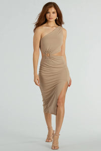 Bold Allure One-Shoulder Cutout Waist Knit Midi Dress