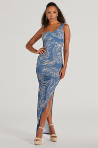 Jetset Babe One Shoulder Tropical Maxi Dress