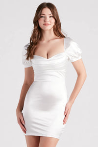 Lexie Rhinestone Satin Puff Sleeve Bodycon Mini Dress