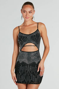 Glitzy Cutout Rhinestone Mesh Mini Party Dress