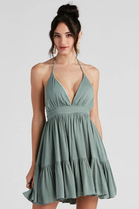 Spring Breeze Linen Halter Skater Dress