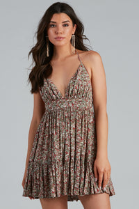 Have nothing but fun in this flirty floral halter dress perfect for a brunch date! It features a sleeveless, halter v-neck with adjustable neck tie, a babydoll style bodice leading to a flowy, ruffled short hem. Showcase some skin in the open-back with tie closure. Complete the look in lace-up sandals.