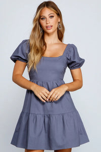 You'll look so effortlessly pretty in this adorable mini dress that is perf for a weekend brunch. It features a square neckline, a low square back design, short puff sleeves, a flattering high waist, and a short tiered skirt with an A-line silhouette. Style this dress with hoop earrings and cute wedges.