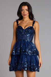 This floral corset mini dress serves up ruffles, romance, and just the right amount of sass. With its curve-hugging bodice and flirty layered hem, it’s basically a love letter in dress form.