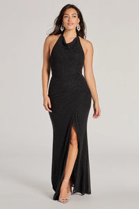 Isabelle Halter Cutout Glitter Slim Formal Dress