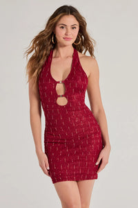 Glam Icon Rhinestone Mesh Halter Cutout Mini Dress