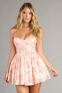 Marvelous Blooms Lace-Up Corset Floral Skater Dress