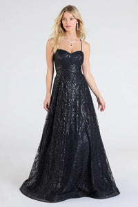 Klaire Lace-Up A-Line Glitter Sequin Formal Dress
