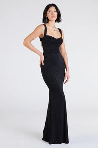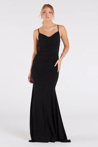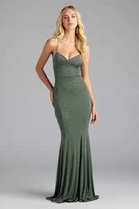 The Corrina glitter formal dress is a sparkling beauty that'll dazzle every party guest! Designed with a flattering cowl neckline and a mermaid silhouette that gives the illusion of the perfect hourglass figure.