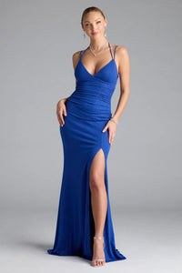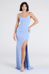 Ariadna Strappy Open Back Slit Glitter Formal Dress