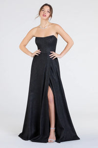 Peyton Strapless Slit A-Line Glitter Formal Dress