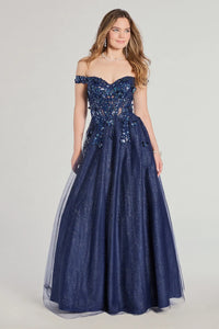 Sofia Off-The-Shoulder Corset Lace-Up Glitter Ball Gown