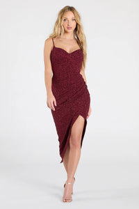 They can meet you at midnight in this sparkling glitter bodycon midi dress out on the dancefloor!