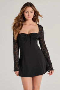 Flirty Factor Lace Long Sleeve Crepe Mini Dress