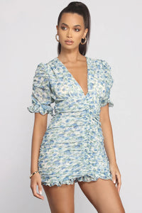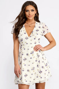 Romantic Blooms Floral Chiffon Wrap Mini Dress
