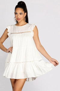 Cupid's got us struck! This romantic airy mini dress is perf for that daytime date you got lined up! Add block heels and a cute cross-body and you'll be all set bb!