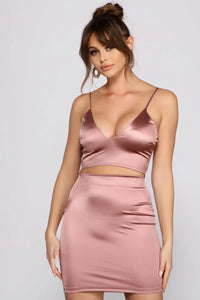 Showcase a stunning sultry style in this gorgeous satin mini dress. It features spaghetti straps, a V neckline, a front waist cut out, and a short, form-hugging fit. The satin fabric has a pretty sheen and offers moderate stretch. Style this dress with a chic clutch to complete your look for a girl's night out!