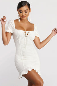Ruffled Eyelet Puff Sleeve Mini Dress