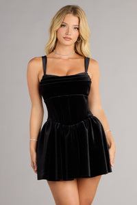 Laurel Velvet Skater Short Dress With Pockets Laurel Velvet Skater Short Dress With PocketsSpecial Occasion Playful yet polished, the Laurel velvet short dress balances a structured bodice with a flirty flared skirt. The open back cutout detail adds a touch of modern allure to a timeless party silhouette. Fit & Features - Soft velvet fabric