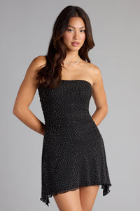 Shine Tonight Rhinestone Strapless Mini Dress Shine Tonight Rhinestone Strapless Mini DressFlirty with a touch of sparkle—this rhinestone mini dress was made for your after-dark plans. Just add heels and a little lip gloss. Fit & Features - Rhinestone-embellished mesh-lined fabric
