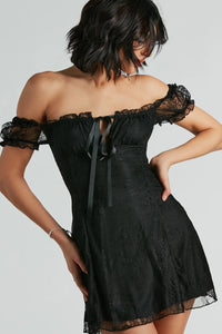 Lovely In Lace Ruffled Puff Sleeve Mini Dress