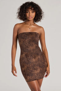 Serving Sultry Leopard Faux Suede Strapless Mini Dress