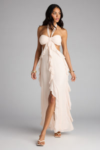 Ruffle and Ready Chiffon Halter Maxi Dress