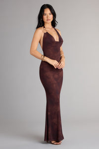 Sultry Fave Halter Cowl Neck Floral Maxi Dress