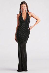Miriam Rhinestone Plunging Halter Mermaid Dress