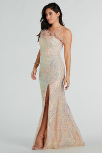 Zuri Formal Sequin Feather Mermaid Dress