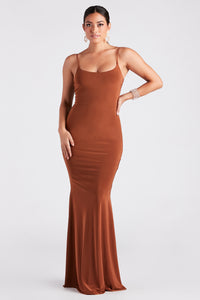 Kaitlyn Formal Square Neck Mermaid Long Dress Kaitlyn Formal Square Neck Mermaid Long DressSpecial Occasion The Kaityln formal dress is designed with class and simplicity that's irresistible! Perfect for banquets, bridesmaids, and dressy events. She features a sleeveless square neckline, sleek spaghetti straps, and a curve-flaunting mermaid silhouette leading to her floor-length hem. The formal dress is composed of a slinky and smooth knit fabric with a buttery soft feel and a stretchy knit lining. Complete the look with statement earrings and a bracelet to add a glam touch! Fit & Features - Sleeveless square neckline, spaghetti straps