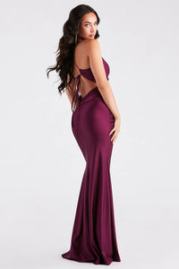 Laine Formal Lace-Up Mermaid Long Dress Laine Formal Lace-Up Mermaid Long DressSpecial Occasion For a look that does it all, the Laine formal dress is the one you're after! She features a sleeveless V-neckline, sleek spaghetti straps that create the lace-up back design, a figure-skimming mermaid silhouette, and a floor-length hem. The formal dress is crafted from a smooth and stretchy knit fabric with a subtle sheen effect. Complete the look for the school dance or a banquet dinner with dangly earrings. Fit & Features - Sleeveless V-neckline