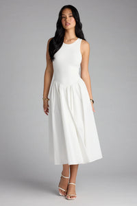 This sleeveless midi dress was made for romantic sunny days! It features a classic crew neck and a flattering drop waist seam that accentuates your figure along the A-line silhouette.