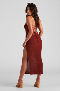 Raise The Bar Ribbed Knit High Slit Midi Dress