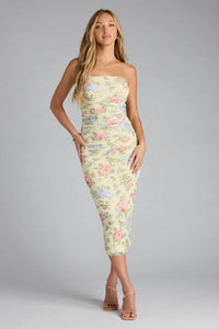 Playful Chic Floral Tube Midi Dress