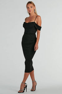 Chic Glamour Cold-Shoulder Glitter Midi Dress