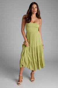 Breezy Summer Strapless Tiered Midi Dress