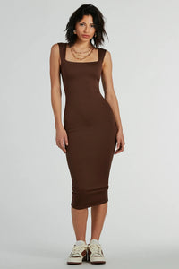 Smooth Silhouette Square Neck Tank Midi Dress