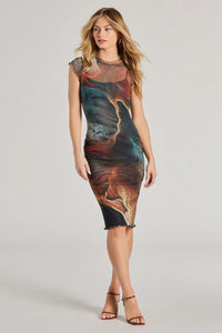 Stunning View Scenic Print Mesh Midi Dress