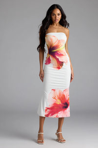 Set For Vacay Tropical Floral Strapless Midi Dress