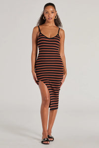 Trendy Staple Striped Ribbed Knit Midi Dress