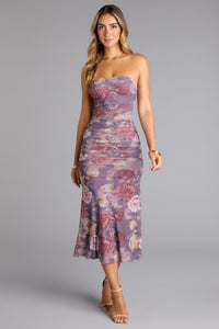 Sunday Soiree Strapless Floral Midi Dress