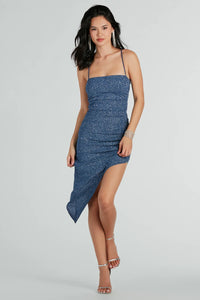 This sleeveless glitter midi dress is all about the glamour and glitz! The striking dress is designed with a hidden corset bodice that snatches your waistline, ruched seams to enhance your curves and a flattering bodycon silhouette. Pair with a clutch.