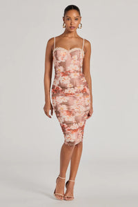 Blooming Romance Floral Mesh Bodycon Midi Dress