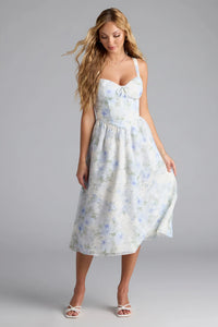 Charmed Sweetness Lace-Up Floral Chiffon Midi Dress
