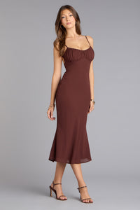 Midi dresses strike that sweet spot between chic and effortless—perfect for brunch with the girls, date night plans, or showing up wedding-guest ready. From flowy A-line silhouettes to curve-hugging bodycon styles, these fits flatter in all the right places. Discover midis with open-back halters, strapless, corset, and bustier bodices that bring the allure, while luxe fabrics like silky satin, mesh with floral prints, and buttery-soft knits keep it elevated. Modern details like ruching, cutouts, and twisted necklines make every midi post-worthy and unforgettable.